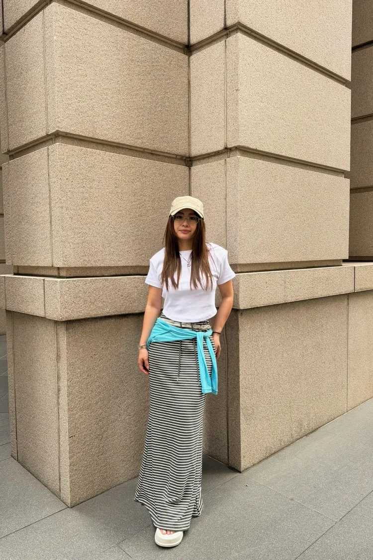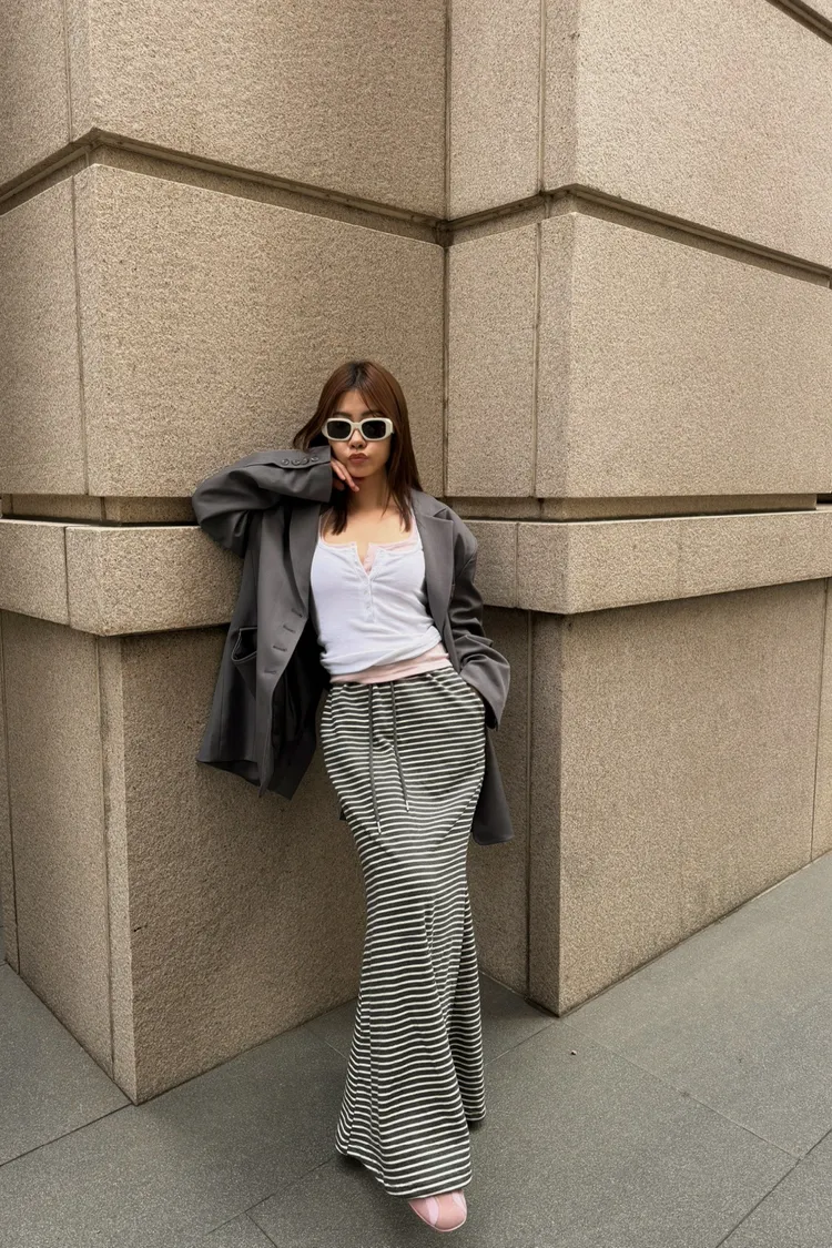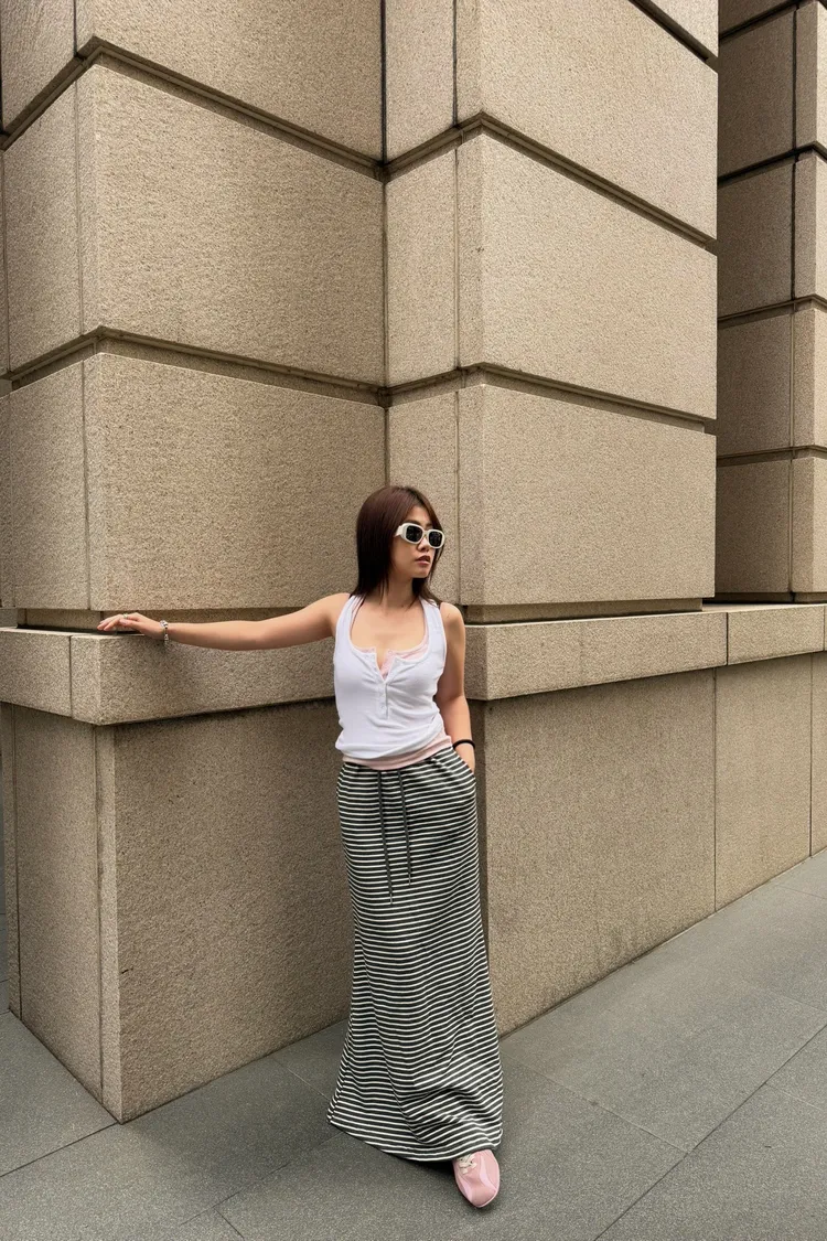 前所未見瘦到爆的條紋裙